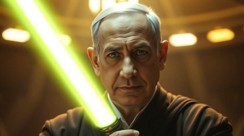 Do outro lado, os Jedi estão a postos. Luke Skywalker Netanyahu olha para o horizonte e diz: