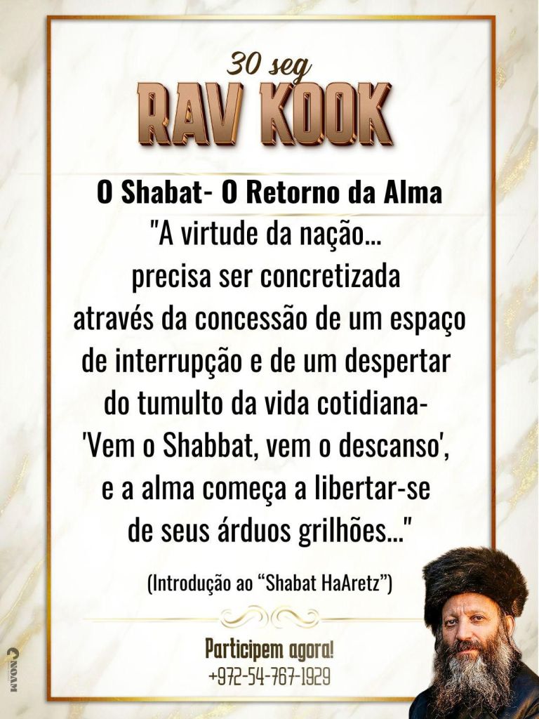 *_O Shabat- O Retorno da Alma_**”A virtude da nação… precisa ser concretizada através da concessão de um espaço de interrupção e de um despertar do tumulto da vida cotidiana- ‘Vem o Shabbat, vem o descanso’, e a alma começa a libertar-se de seus árduos grilhões…”*(Introdução ao “Shabat HaAretz”)*_השבת – משיבת נפש:_**”סגולת האומה…צריכה שתצא אל הפועל על ידי נתינת רווח של הפסקה והתנערות ממהומת החיים הרגילה – “באה שבת באה מנוחה”, ומתחילה הנפש להשתחרר מכבליה הקשים…”*(הקדמה ל’שבת הארץ’)**Pela refuá shelemá de todos os feridos; Pela ilui neshamá dos falecidos; Pelo fortalecimento dos soldados do Tzahal; pela vitória rápida e absoluta e a redenção completa!**https://chat.whatsapp.com/E2T0ERDlGv149NnYnQVDf3?mode=hqrt3never again🇧🇷https://www12.senado.leg.br/ecidadania/visualizacaoideia?id=183982&voto=favorShabat shalom/Chaverim, é da maior importância que leiamos e assinemos a proposta legislativa acima, que ainda conta com apoio restrito, mas que facilitará enormemente a vida dos Judeus no Brasil! ASSINEM! APÓIEM!!!! DIVULGUEM!!!! worldjornalistaandrehmendan.online#נדרהמנדהה #Israel #andrehmendanhanettodasilva #jornalismo #judaísmomessiâniconãoexiste