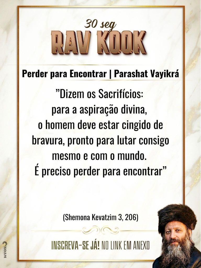 *_Perder para Encontrar_**”Dizem os Sacrifícios: para a aspiração divina, o homem deve estar cingido de bravura (gervurá), pronto para lutar consigo mesmo e com o mundo. É preciso perder para encontrar”*(Shemona Kevatzim 3, 206)*_לאבד כדי למצוא_**”אומרים הקרבנות, שבשביל השאיפה האלהית צריך האדם להיות אזור בגבורה, להיות מוכן ללחום עם עצמו ועם העולם. לאבד צריכים כדי למצוא”*(שמונה קבצים ג’, ר”ו)**Pela refuá shelemá de todos os feridos; Pelo fortalecimento dos soldados do Tzahal; Pela vitória rápida e absoluta: Pelo fim da guerra e a redenção completa!**https://chat.whatsapp.com/E2T0ERDlGv149NnYnQVDf3?mode=hqrt3never again🇧🇷https://www12.senado.leg.br/ecidadania/visualizacaoideia?id=183982&voto=favorShabat shalom/Chaverim, é da maior importância que leiamos e assinemos a proposta legislativa acima, que ainda conta com apoio restrito, mas que facilitará enormemente a vida dos Judeus no Brasil! ASSINEM! APÓIEM!!!! DIVULGUEM!!!! worldjornalistaandrehmendan.online#נדרהמנדהה #Israel #andrehmendanhanettodasilva #jornalismo #judaísmomessiâniconãoexiste