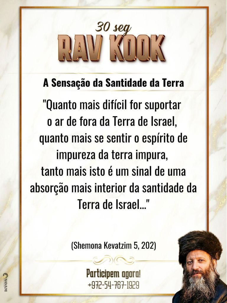 *”וכל מה שקשה יותר לסבול את אויר חוץ לארץ, כל מה שמרגישים יותר את רוח הטומאה של אדמה טמאה, זהו סימן לקליטה יותר פנימית של קדושת ארץ ישראל…”*
