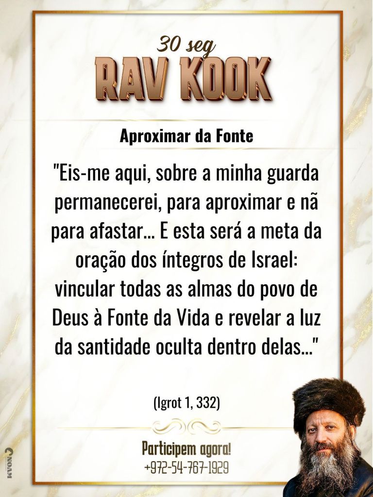 “הנני, על משמרתי אעמודה לקרב ולא לרחק… וזאת תהיה מגמת תפילת כשרי ישראל, לקשר את כל נשמות עם ד’ למקור החיים ולגלות את אור הקדושה הטמון בהם…”