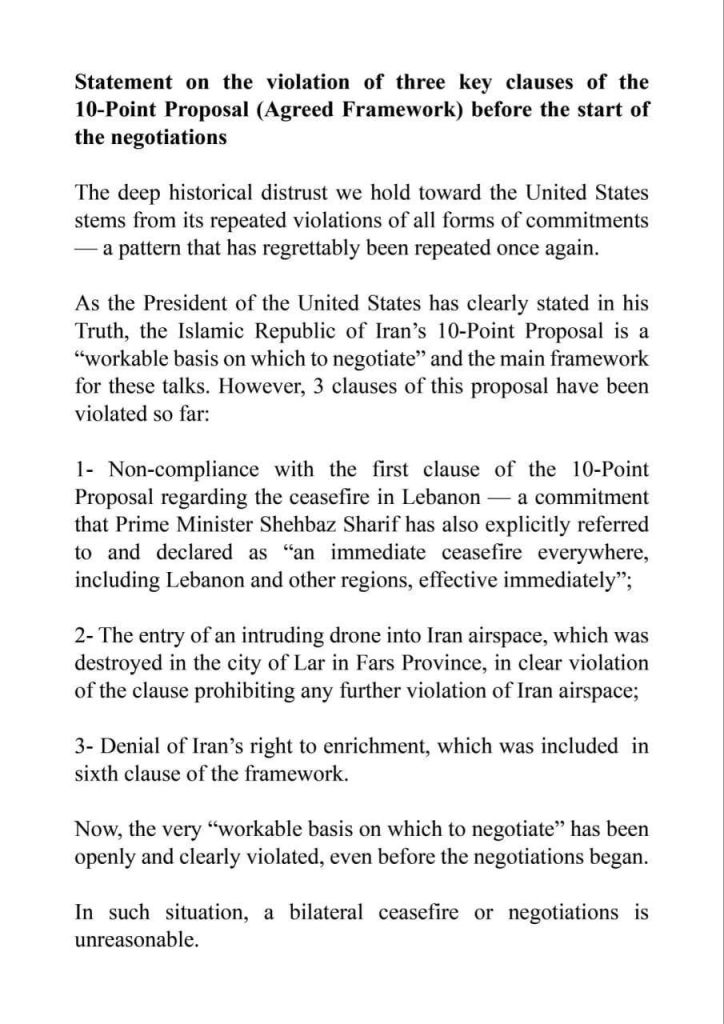 *Mohammad Ghalibaf, presidente do Parlamento iraniano:*Três das dez cláusulas da proposta iraniana de cessar-fogo já foram violadas: 1. O cessar-fogo no Líbano. 2. Um drone entrou no espaço aéreo iraniano. 3. O direito do Irã de enriquecer urânio foi negado.Diante dessa situação, um cessar-fogo bilateral ou negociações são irrazoáveis.Grupo de Noticias Likud Brasil: https://bit.ly/walikudbr*Faça parte do Likud Brasil e nos ajude a combater o antissemitismo.* Cadastre-se grátis:bit.ly/likudcadnever again🇧🇷https://www12.senado.leg.br/ecidadania/visualizacaoideia?id=183982&voto=favorShabat shalom/Chaverim, é da maior importância que leiamos e assinemos a proposta legislativa acima, que ainda conta com apoio restrito, mas que facilitará enormemente a vida dos Judeus no Brasil! ASSINEM! APÓIEM!!!! DIVULGUEM!!!! worldjornalistaandrehmendan.online#נדרהמנדהה #Israel #andrehmendanhanettodasilva #jornalismo #judaísmomessiâniconãoexiste
