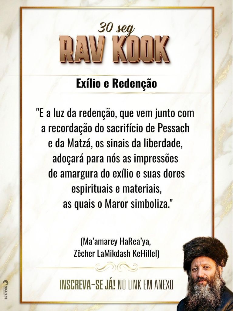 *״ואור הגאולה הבא יחד עם זכרון הפסח והמצה, סימני החירות, ימתיק לנו את רשמי המרירות של הגלות ומכאוביה הרוחניים והחמריים שהמרור מסמנם״*