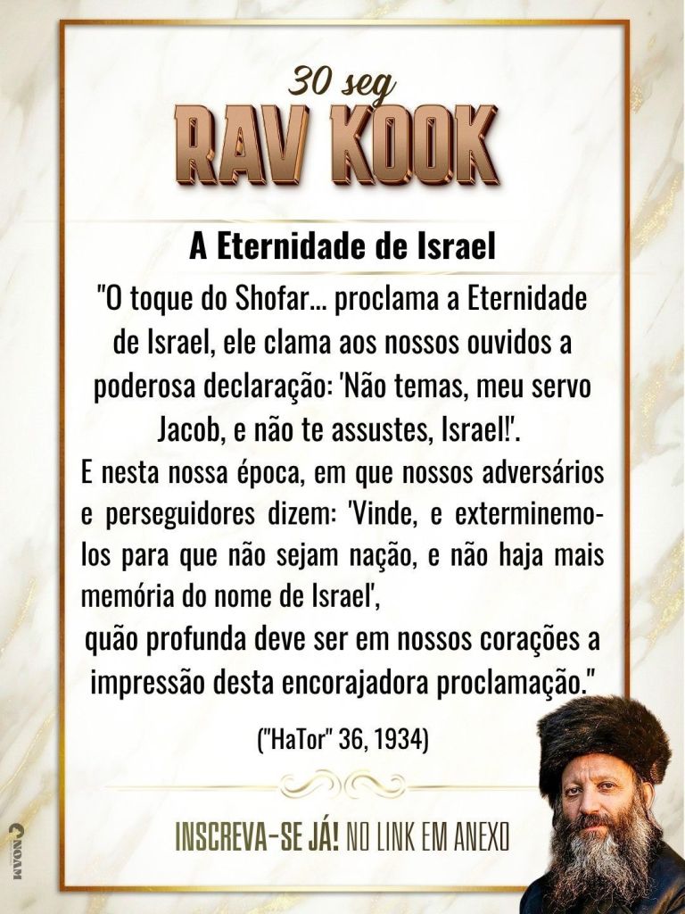 *”O toque do Shofar, no dia grande e sagrado para o nosso Senhor, proclama a Eternidade de Israel (Netzach Israel), ele clama aos nossos ouvidos a poderosa declaração: ‘Não temas, meu servo Jacob, e não te assustes, Israel!’. E nesta nossa época, em que nossos adversários e perseguidores dizem: ‘Vinde, e exterminemo-los para que não sejam nação, e não haja mais memória do nome de Israel’, quão profunda deve ser em nossos corações a impressão desta encorajadora proclamação.”*