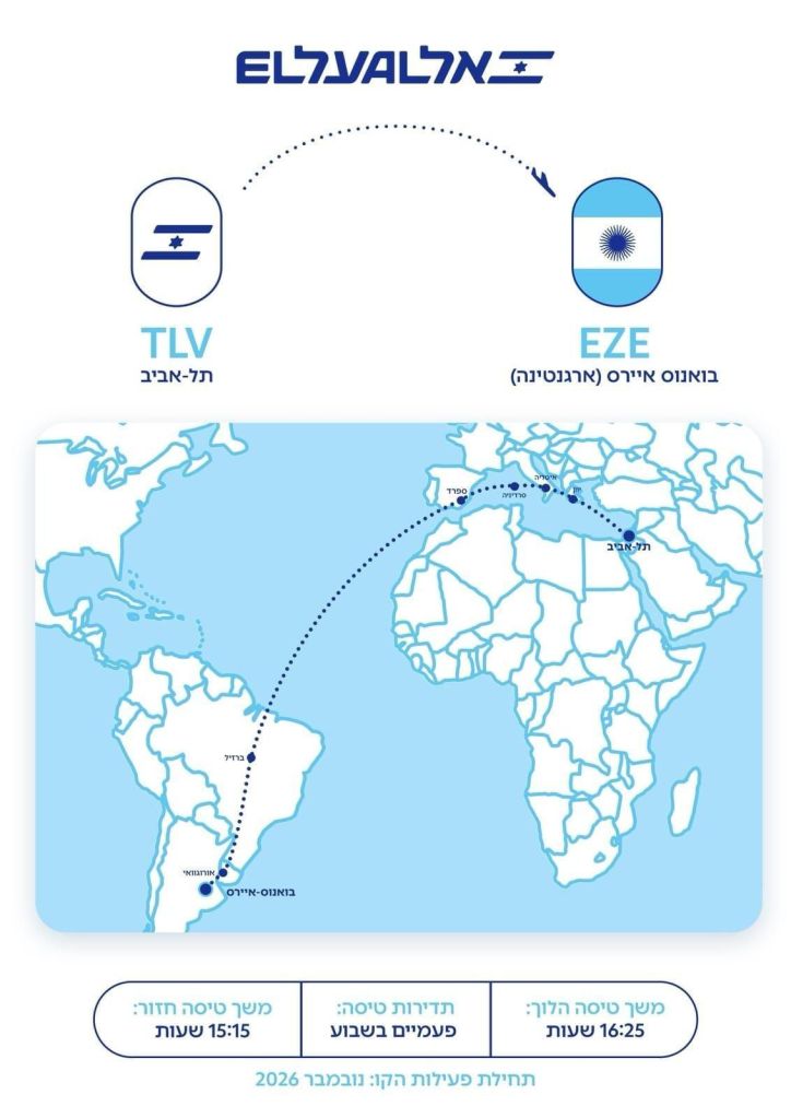 A rota deverá operar duas vezes por semana, utilizando aeronaves Boeing 787 Dreamliner da El Al.