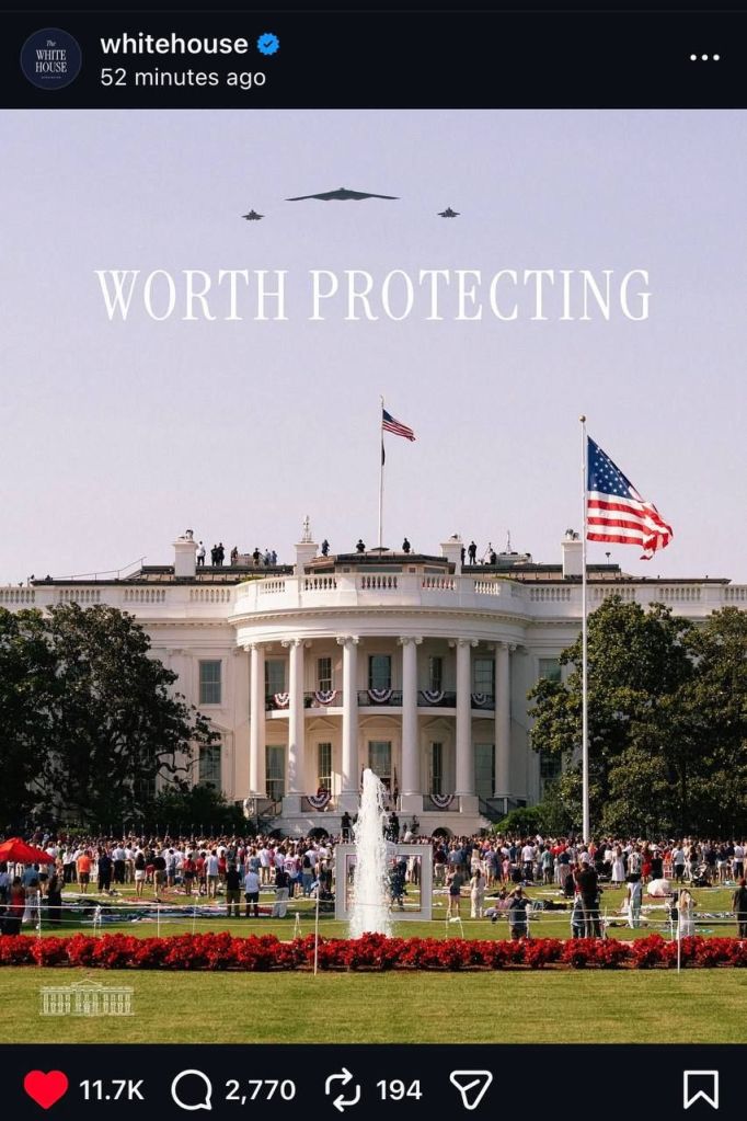 *האינסטגרם של הבית הלבן רומז לאירנים לבאות:* מפציץ B-2  לצד הקריאה ״שווה לשמור על זה״