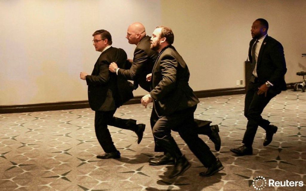*Agentes de segurança retiraram às pressas o presidente da Câmara dos EUA, Mike Johnson (Republicano da Louisiana), do local após um atirador abrir fogo durante o evento anual da Casa Branca.*