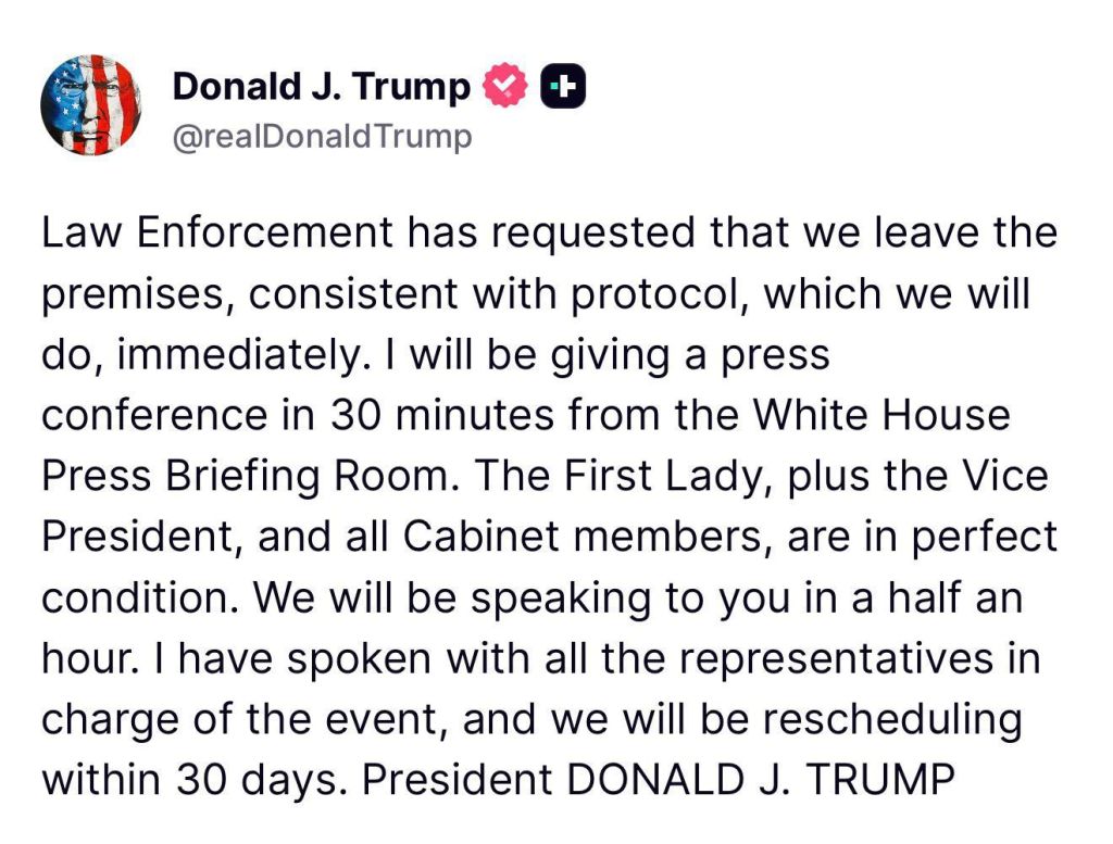 *URGENTE: O presidente Donald Trump afirma que está deixando o local do tiroteio após ser solicitado pelas autoridades a fazê-lo.*